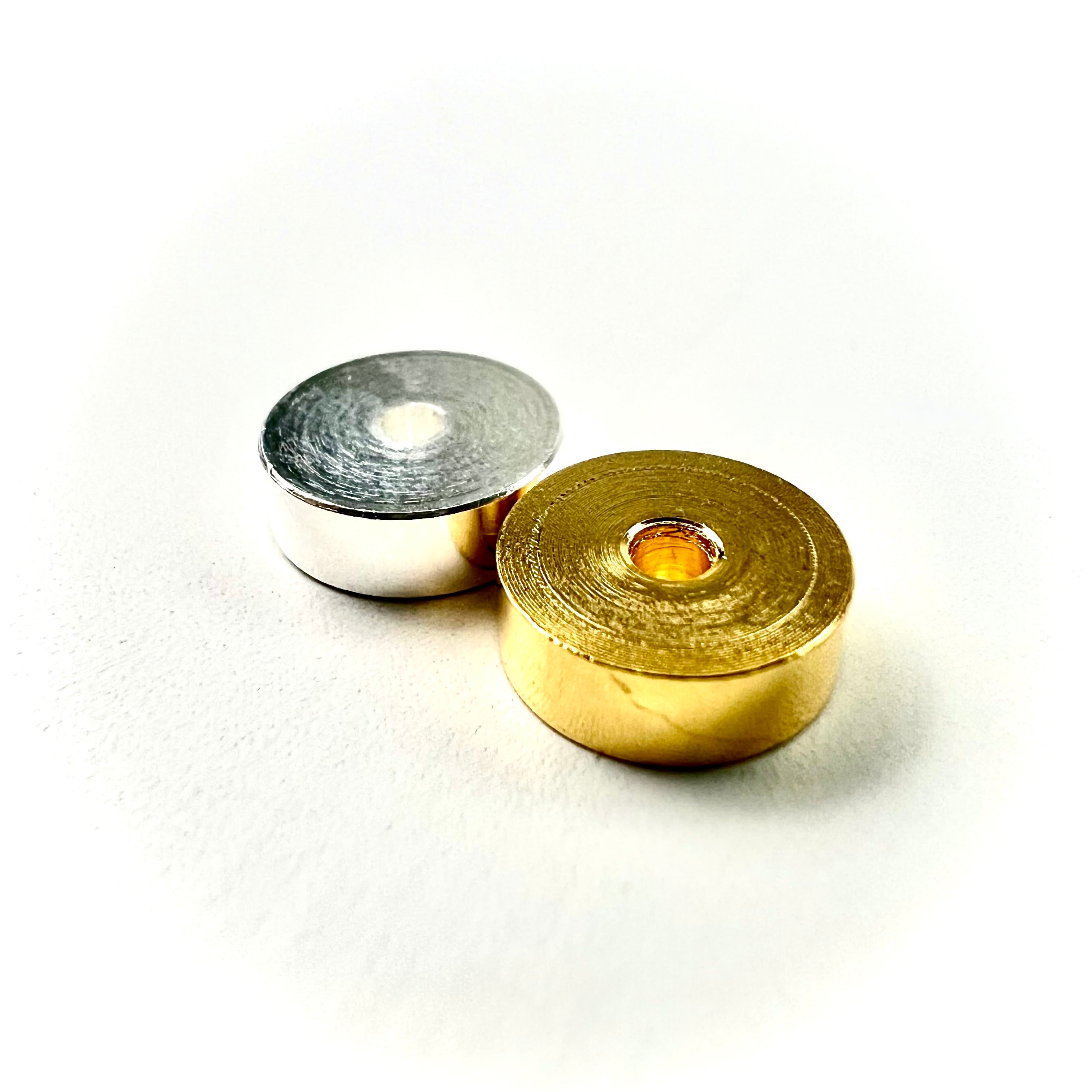 Swing Chip Gold (9mmΦ×3mm) : 24金メッキ、中央に2mmの穴あきタイプ。メッキによる響きと反応の良さが向上。