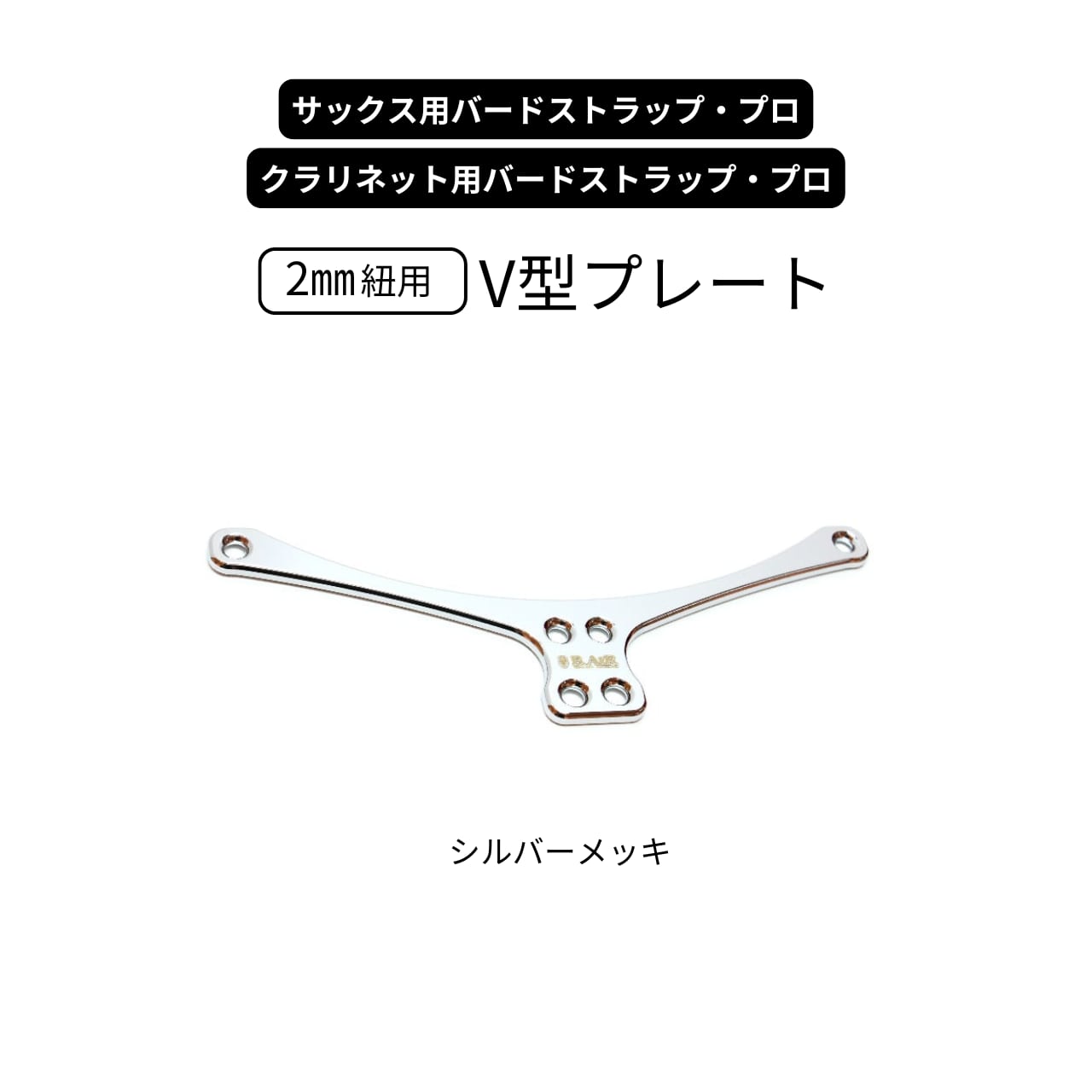 【サックス/クラリネット用】V型プレート:メッキ加工(シルバー)【バードストラップ・プロ】
